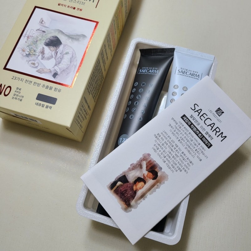 장갑은 두껍습니다. 손이 더러워질 염려가 없습니다. 백발 염색 사용 설명서입니다. ! 염모제 1과 2 모두 잘 밀봉된 염모제를 1:1 비율로 충분히 짜서 잘 섞었습니다. 저희 엄마는 흰머리 뿌리 부분만 염색을 하셔서 저는 반정도만 사용해요. 양도 많고 두번 쓸수 있고 가격도 착하고 백발염색 새감은 검게 염색해서 새감이라 부른다. 우선 현재 저희 엄마 머리 상태입니다! 그녀는 앞면에 흰 머리카락이 많이 있습니다. 앞머리를 제외하고 머리 전체의 뿌리가 3cm 정도 자랐습니다. 갈색이다. 시간이 지날수록 색이 짙어지고 염색약이 물들기 시작하더라구요~ 성분때문인지 엄마가 그랬는데 염색할 때 독하지도 않고 향도 강하지 않아서 나쁘지 않았어요. 염색은 아주 자연스러웠고, 아니 너무 진할거고 제일 중요한건 머릿결이 엄청 부드러워요. 원래 염색이 어렵고 관리하기 힘든 머리를 이문원 염색약 새캠으로!링크 이문원한의원 프리미엄 샴염색 160g : 이문원 공식 매장 이문원한의원의 딥컬러 염색약은 탈모 환자를 위해 특별히 고안된 염색약.