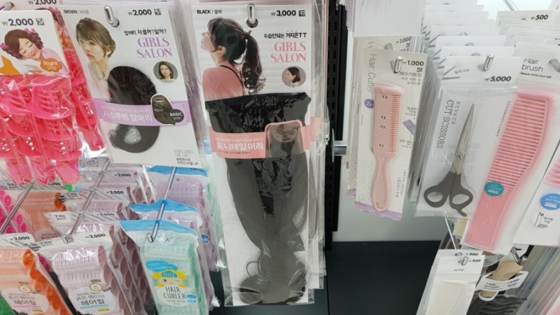 다이소 가발 말고도 헤어롤부터 머리카락 관련 용품들이 정말 많았는데 이만은 검은색 긴머리 둥근 가발을 소유하고 있는 사람인데 어디였지… 핑크에이지에서 산 기억이 난다. 앞머리 부분에 고데기나 헤어드라이기가 전혀 없어서 많이 불편했지만 이 거지존을 견딜 수 있게 해준 나의 필수 아이템이라고 소중히 간직하고 있다.