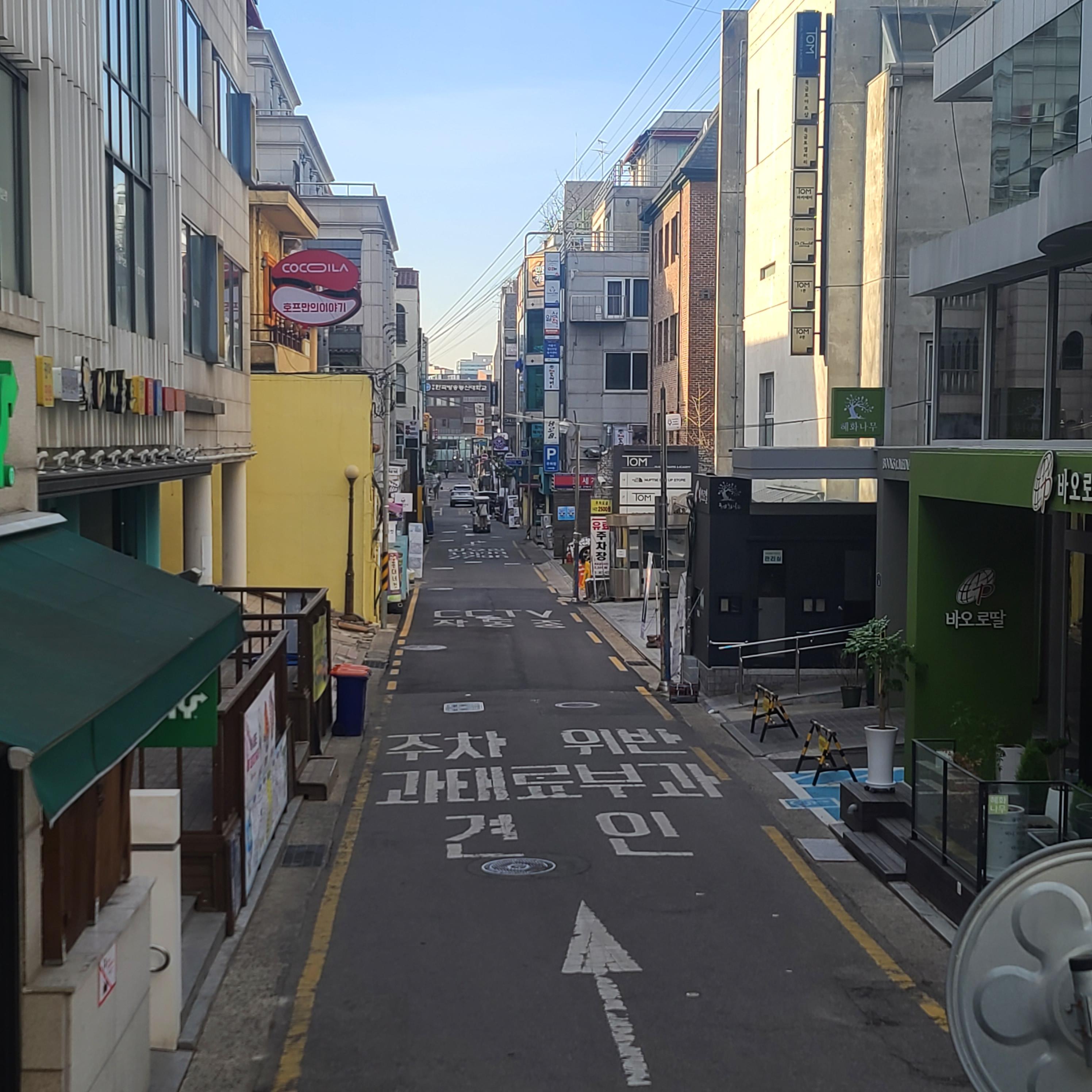 아침의 텅 빈 거리의 차가운 느낌