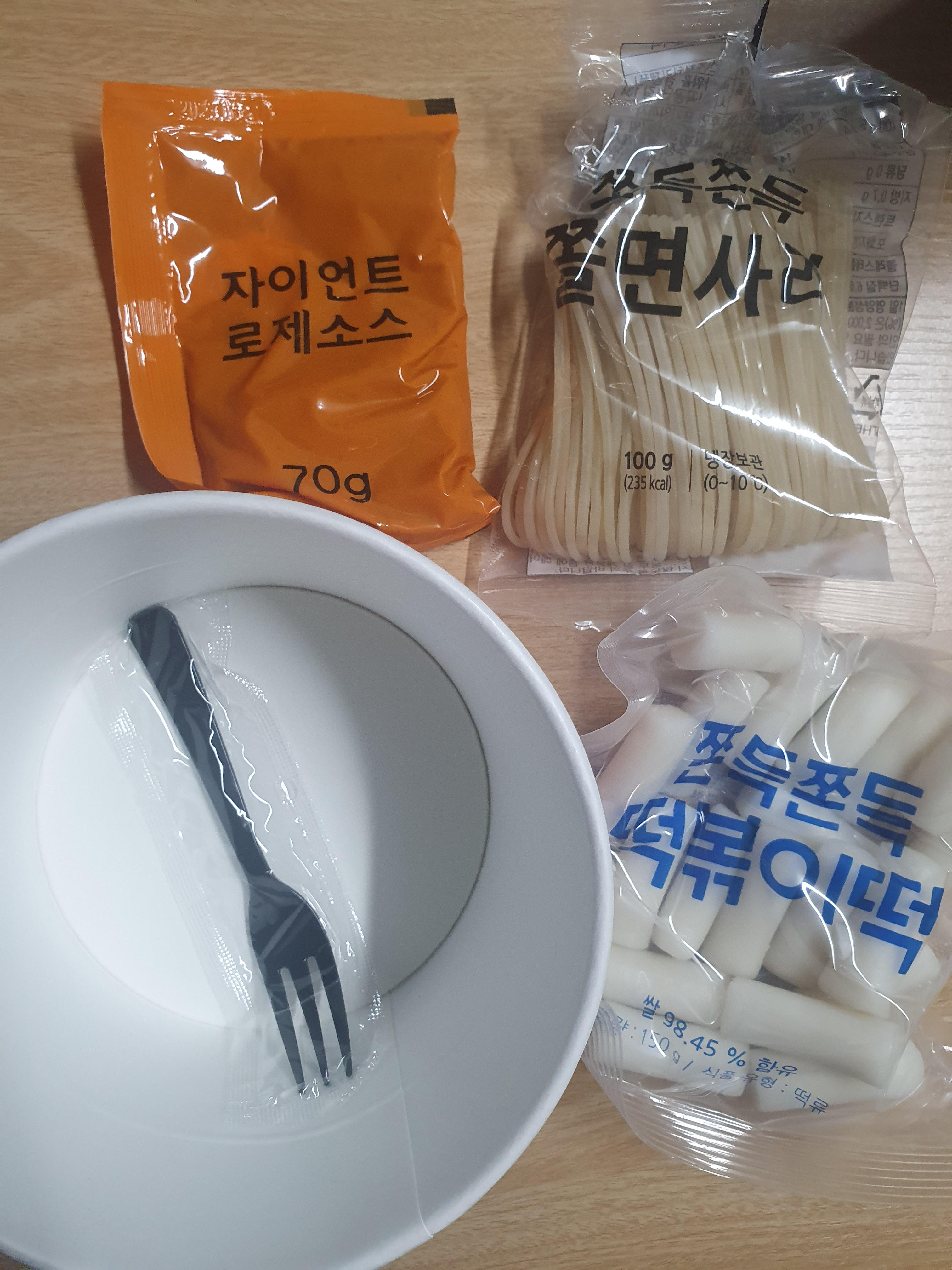 편의점에서 간단하게 먹을 수 있는 것을 찾다가 로제 쫄볶이가 있어서 샀습니다.